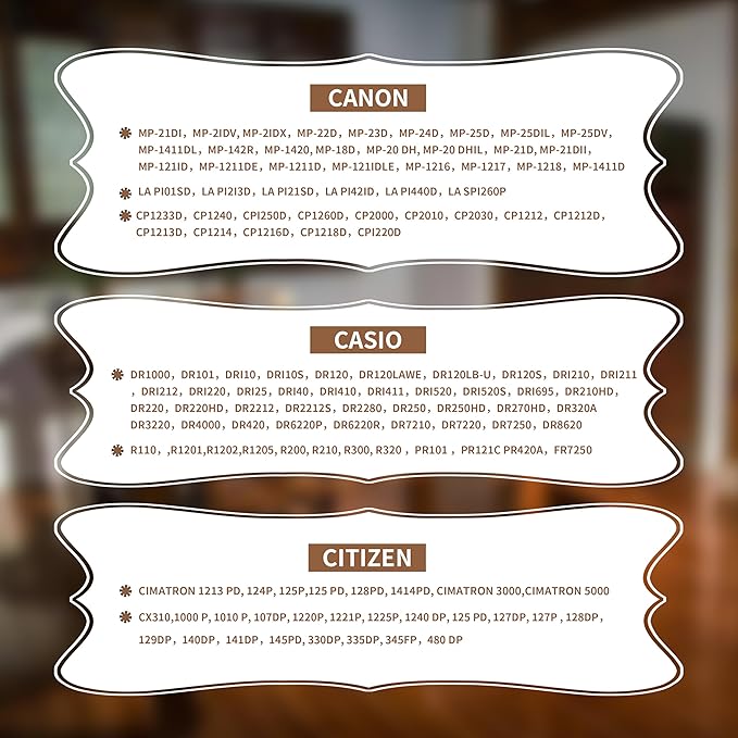 - COMPATIBILITY: This Printer Ribbon Is Compatible with Most Printers Such As Sharp EL-1197PIII EL-2196BL, Canon MP21DX MP1DX MP25DV MP27D, Casio Fr-2650tm DR-120R Dr-210r, BOEDCN-GR24BR, Porelon # 11216 # 11210 Nukote BR80C, Also Fits Citizen and Victor.