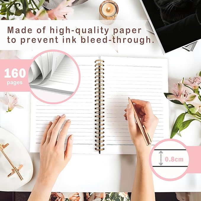 - 【Durable Material】 This spiral notebook is made of durable and sturdy materials, featuring gold double-wire binding to ensure the coil stays secure and doesn’t loosen easily, providing a smooth page-turning experience. The notebook can fold completely 360°, making it easy to write in any situation. It contains high-quality paper that prevents ink bleed-through, offering a smooth writing and drawing experience. The firm cover is resistant to bending, protecting the internal pages.