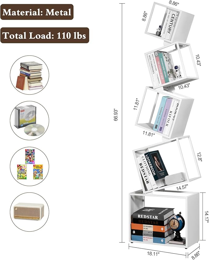 - Compact Dimensions with Impressive Weight Capacity:Measuring 66.93 inches in height and 18.11 inches in width, this five-tier shelf provides generous storage space. With a weight capacity of up to 110 pounds, it’s ideal for books, decor, and everyday essentials, meeting a wide range of storage needs.