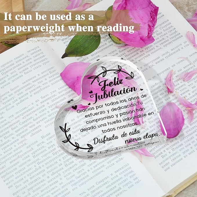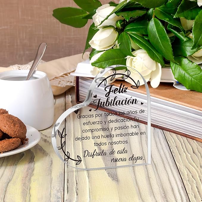 Yopyame Spanish Retirement Acrylic Gifts - Regalos para Feliz jubilación Heart Acrylic Plaque for Women Men Unique Acrylic Keepsake Paperweight for Retirees in Spanish Retirement Party Plaque Decor
