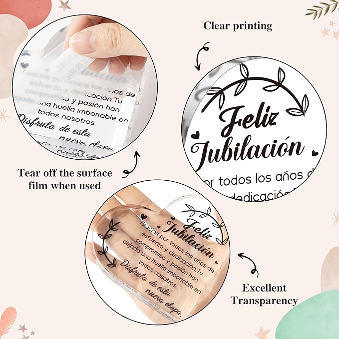 - MEMORABLE GIFT: Our products are carefully designed to express our wishes for retirees in Spanish, perfect for meaningful home decorations, photo props or a wonderful gift for retirees