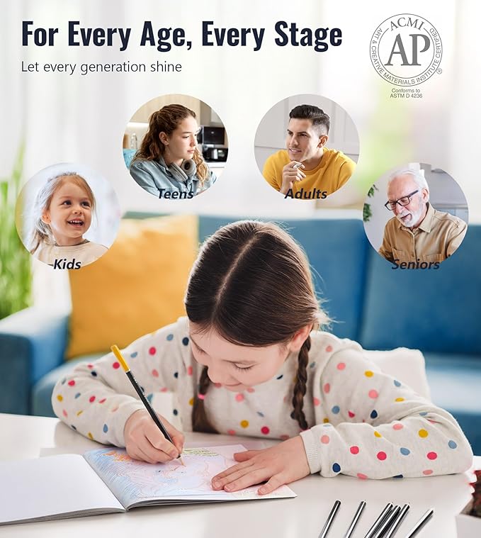 - SAFE & NON-TOXIC: Crafted with safety and quality in mind, these colored pencils are ASTM D4236 certified. The eco-friendly, odorless materials ensure a worry-free coloring experience. Thoughtfully packaged in an elegant box, this set is designed for easy storage and gifting. Whether for birthdays, holidays, or special occasions, the oil based colored pencils make an ideal present for artists, students, and coloring enthusiasts alike