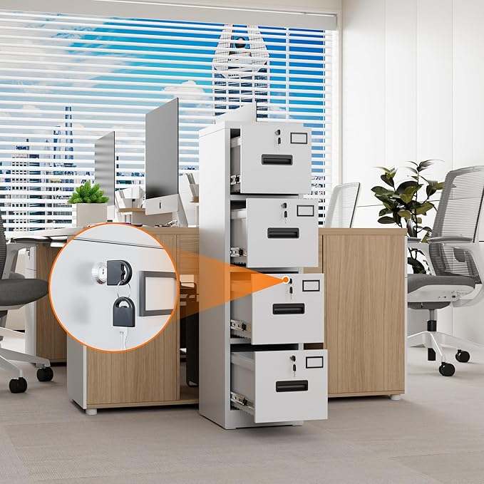- [High Security] This file cabinet has 4 drawers simultaneously with 4 locks for maximum protection. You can effortlessly secure each drawer individually, ensuring peace of mind for your important documents. Plus, the included name card holder makes it simple to organize and access your contacts, streamlining your workflow and enhancing efficiency.