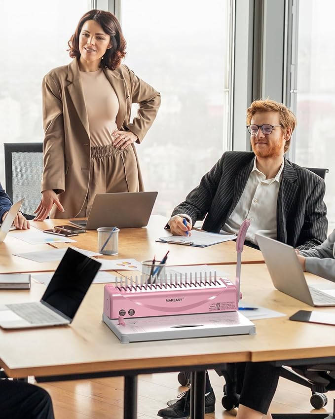 MAKEASY Binding Machine, 21-Hole, Comb Binding Machines with 100PCS Comb Bindings Spines, Comb Binder for Letter Size, A4, A5 Paper