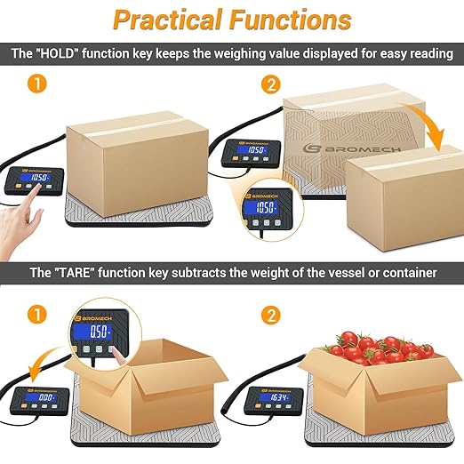 - [Hold & Tare Functions for Accurate and Easy Measurements] The hold function locks the weight display for easy reading, especially with larger or irregularly shaped packages, while the tare function resets the scale to zero after placing a container, ensuring accurate measurements of just the contents.