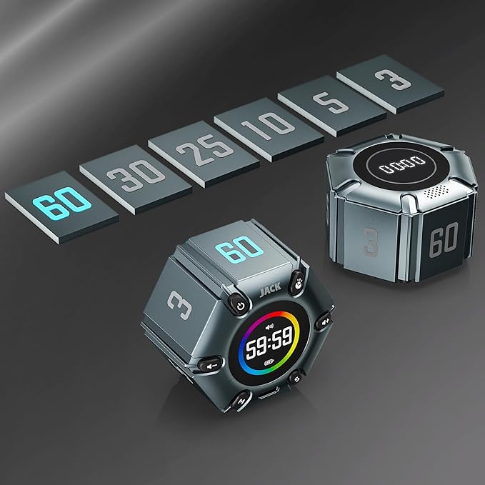 - Unique design: The Printersjack pomodoro timer is designed to make your life more efficient and relaxing. It features six preset countdown times—3, 5, 10, 25, 30, and 60 minutes—that are activated with a simple flip. Additionally, you can customize the countdown using the M and S buttons below, which allow you to increase the time. This clock helps you manage your time effectively and take control of your day.