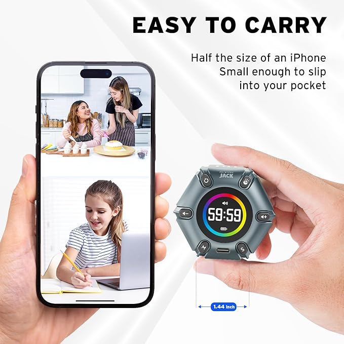 - Portable and Rechargeable: Our gravity timer is compact and sleek, making it easy to slip into a pocket or bag. It is rechargeable, featuring a durable lithium battery and a USB-C charging port, which eliminates the need to buy batteries. You can even use it while it's charging.