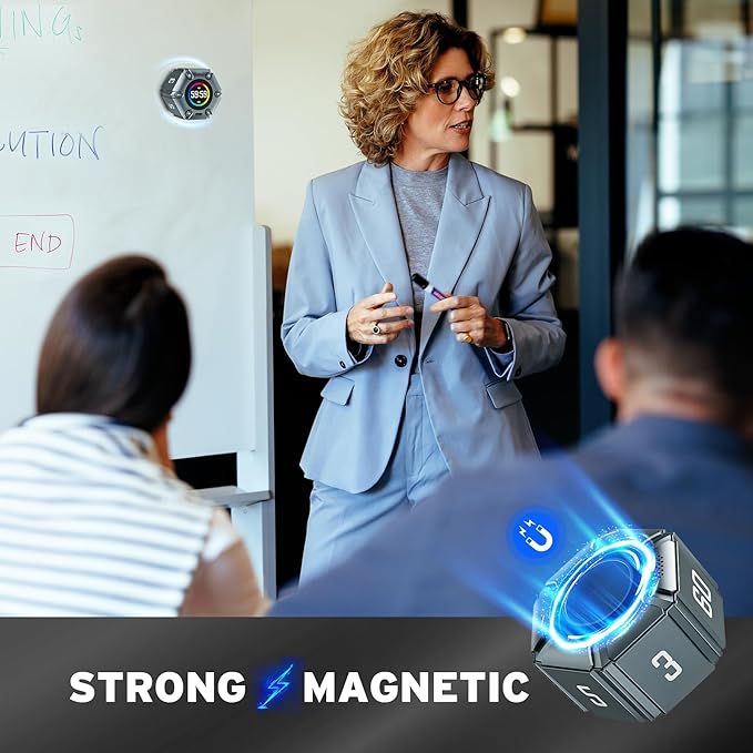 - Magnetic function: Our products with a magnetic base, has a very strong magnetic force, can be firmly adsorbed on the refrigerator, whiteboard or any steel surface, when you make a report and presentation at work, you can use it to time, when the time is over, the product will not shake to the ground, the magnetic force is very strong.