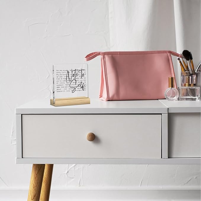 Inspirational Office Desk Decor, Positive Inspirational Quotes Desk Decor, Encourage Gifts for Women, Room Decoration for Teen Girls, Acrylic Sign With Wooden for Office Table Shelf-Note To Self