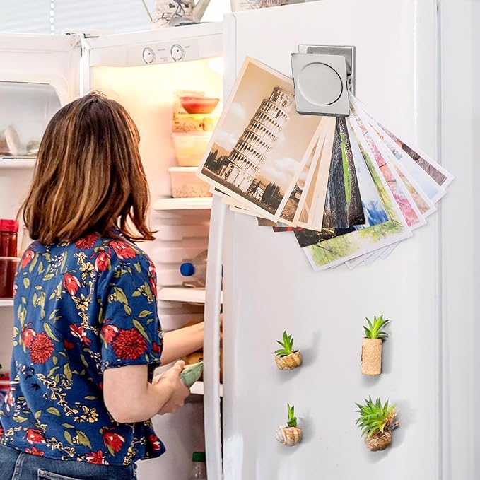 - ✅【Exquisite and Practical】: Durable stainless metal construction, and quality silver finish. This durable and beautiful magnetic clip can be used to display your precious collections, help you save space, and make your home look shiny as new!