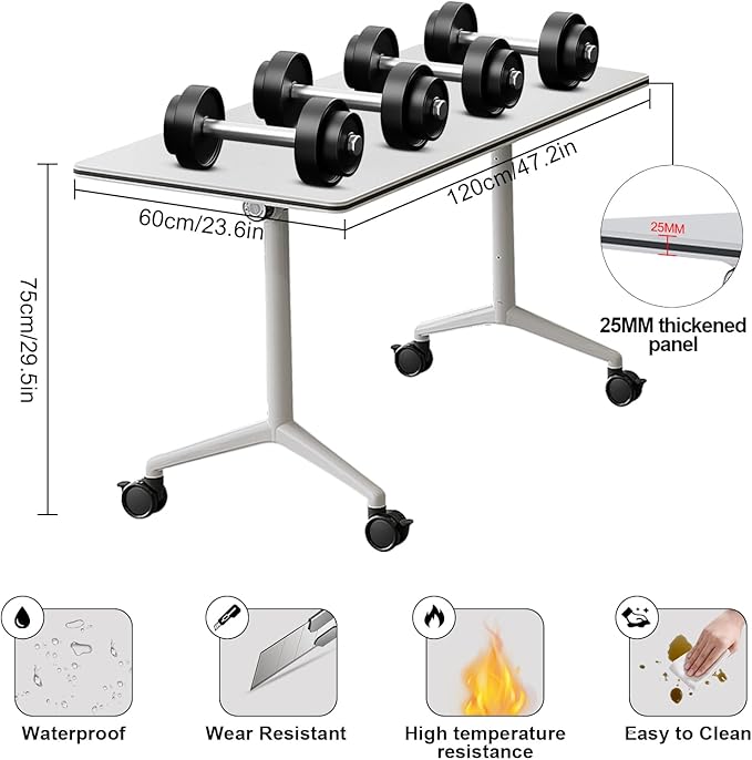 - 【Feature】: This folding conference table desktop is made of high-quality wood, which is smooth, waterproof, scratch-proof, fire-proof and easy to clean.