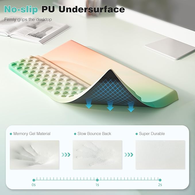 - Massage protrusions relieve wrist pain and fatigue, keep you sweat-free, and maintain perfect comfort while typing on your keyboard pad.