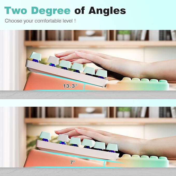 - Works with most keyboards and features two angle settings - adjust the tilt to match how you type for all-day comfort.