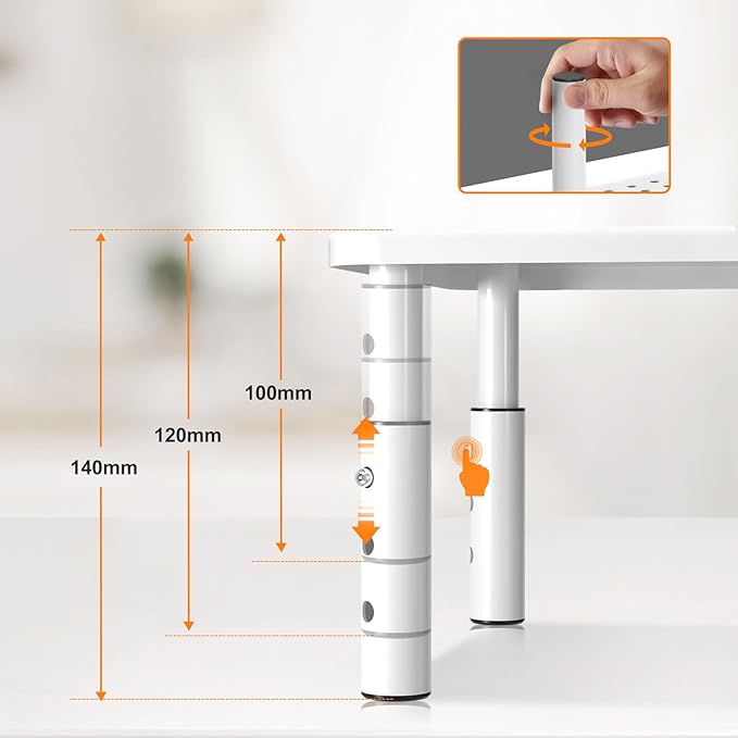 - 【3 HEIGHT ADJUSTMENT】- Fits all laptop brands and models of laptops, printers, gaming consoles, TVs and more devices.Comes With platform dimensions of 370X235MM (L x W) in size, this stand could raise your monitor by 3 adjustable height levels (100MM/120MM/140MM).maximize your desk space and keep your monitor at a proper height. Just press the button on the leg and lift the platform to adjust different height levels.