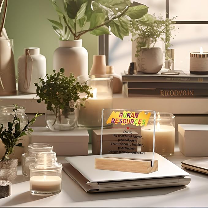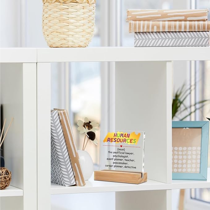Human Resource Definition HR Gifts Acrylic Sign with Wood Stand, Human Resources Gifts Bedroom Living Room Desk Cubicle Table Shelf Decor, Office Gifts for Women Men Manager Director Coworker