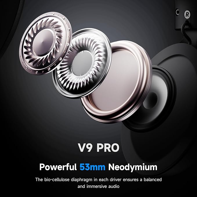 - 【7.1 Surround Sound for FPS Games】Experience Crystal-Clear and Rich Sound Quality with Powerful 53mm Neodymium Drivers. The cutting-edge bio-cellulose diaphragm in each driver where you can hear details like enemy footsteps and distant gunfire by gaming headsets, ensures a balanced and immersive audio experience.