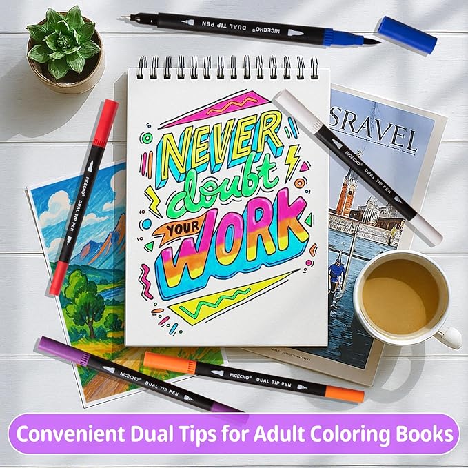 Nicecho 24 Colors Dual Tip Art Markers Pens for Adult Coloring Books, Brush and Fineliner Tip Art Suppliers for Journaling Note Taking Lettering