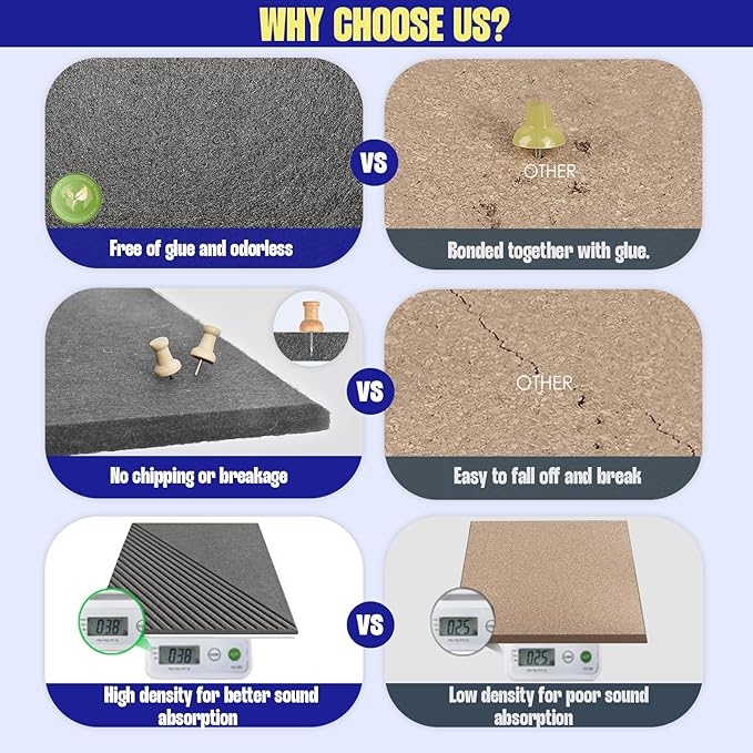 - Sound Absorption: The dense felt cork board helps absorb sound, making it an excellent choice for reducing noise and enhancing acoustics in your office, studio, or home office space