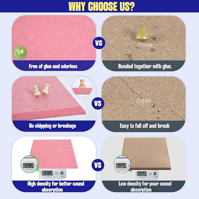 - Sound Absorption: The dense felt cork board helps absorb sound, making it an excellent choice for reducing noise and enhancing acoustics in your office, studio, or home office space