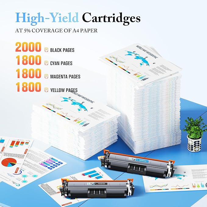 - 【High Yield 210A】: Up to 2,000 Pages for HP 210A W2100A black, 1,800 Pages for 210A W2100A Yellow, 1,800 Pages for 210A W2100A Cyan and 1,800 Pages for 210A W2100A Magenta based on 5% coverage (Letter/A4)