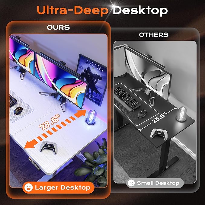- 【Whisper-Quiet Operation】Powered by a robust yet quiet motor (operating at less than 45 DB), the wide deep desk brings smooth height adjustments without disturbing your household or office environment. This standup desk for home office is ideal for keeping focus and slient