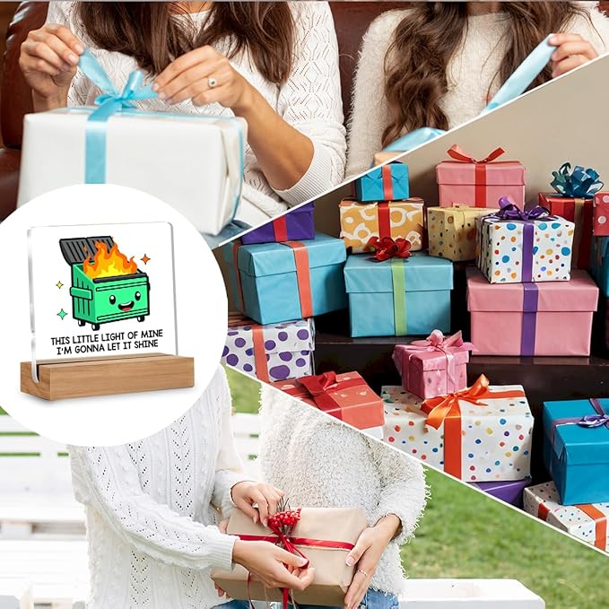 Dumpster Fire Desk Accessories, Funny Dumpster Fire Acrylic Plaque Gifts for Coworkers Friends, Employee Appreciation Gifts, This Little Light of Mine Office Desk Signs Decor 4 × 4 Inches