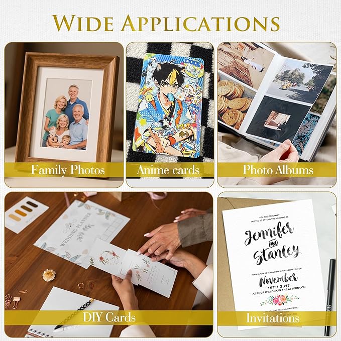 - Wide Application: Perfect for Family Photos, DIY Photo Albums, Invitations, Certificate Photos, Greeting Cards, Anime cards, etc.