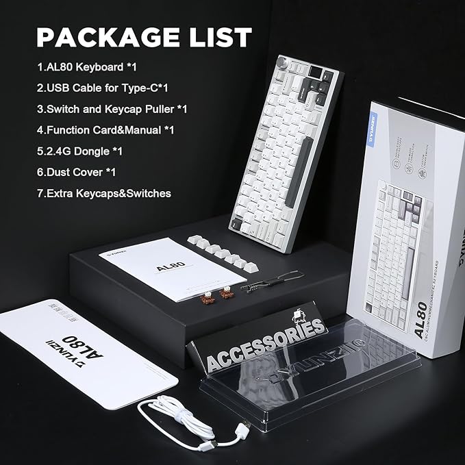 - Full Key Hot Swappable&Pre-Lubed Linear Switches: As a hot swappable mechanical keyboard, YUNZII AL80 gaming keyboard is compatible with 3pin/5pin mechanical switches, which can be sompatible with all MX switch including Gateron, Cherry, etc, offering endless customization options for a truly personalized setup. The AL80 gaming keyboard is equipped with pre-lubed linear switches. Known for their creamy, smooth sound, these linear switches are ideal for both gaming and everyday use.