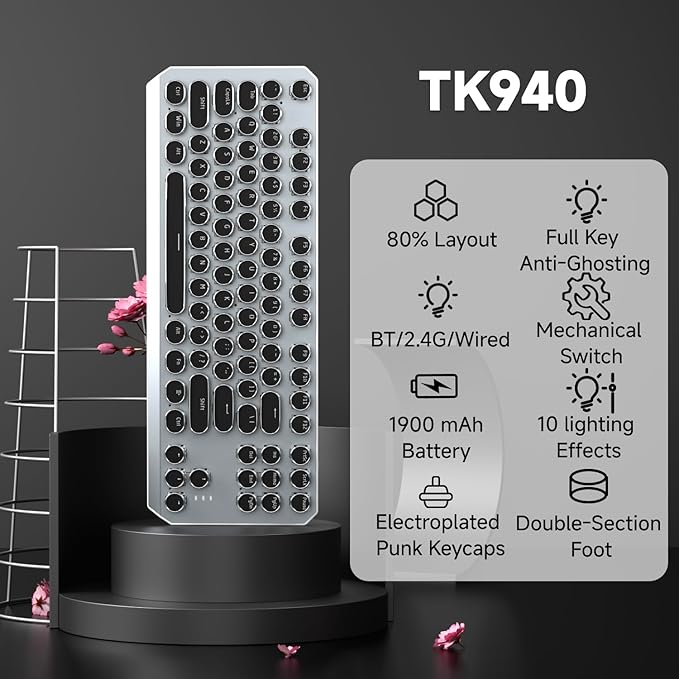 - 【Metal Panel and Electroplated Punk Keycaps】:The retro typewriter keyboard wireless panel is made of top-grade aluminium alloy, with a metallic matte texture, sturdy and robust enough to protect it from scratch. The floating keycaps are carefully crafted using metal plating technology, with a unique monochromatic light that instantly makes your keyboard look stunning, and enhances the feeling of the wireless backlit keyboard.