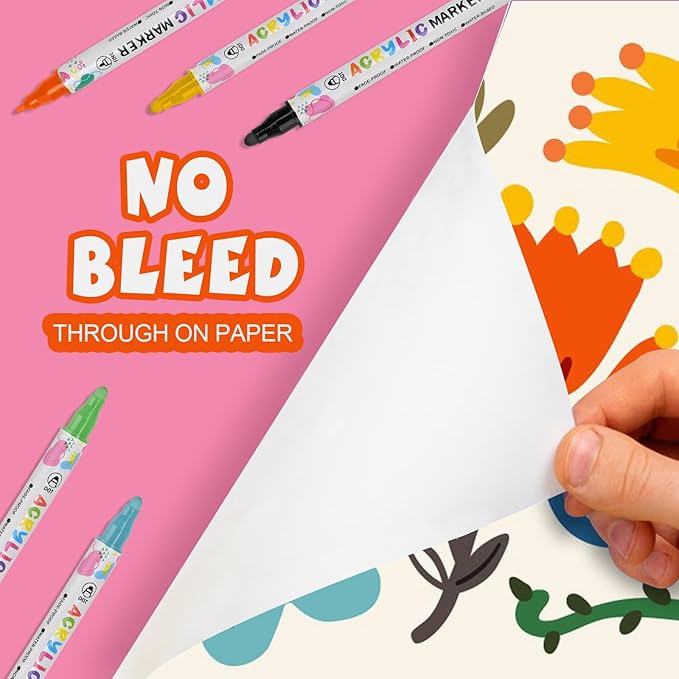 - Strong adhesion acrylic markers for Multi-Surface Any Project ---- Designed to perform on paper, fabric, wood, metal, glass, rock, and ceramic, these water-based markers provide consistent, fade-resistant, Waterproof and anti shedding, letting you create with confidence across multiple surfaces.
