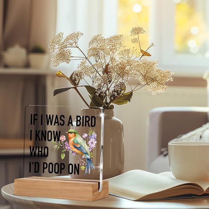 Funny Gifts for Bird Lovers Coworkers, Gag Office Gifts for Women Men, Bird Watching Gift Acrylic Plaque, Novelty Birds Desk Signs Decor 4 × 4 Inches