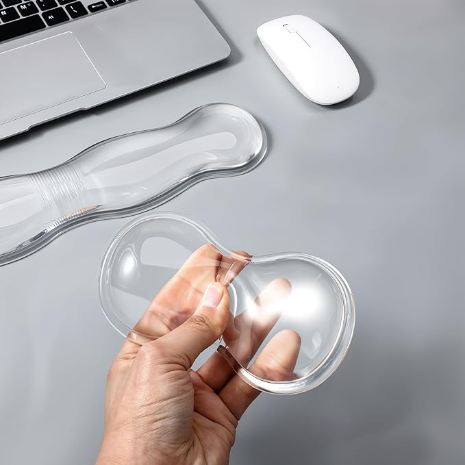 - High-Quality Non-Slip Silicone - Crafted from top-notch non-slip silicone, the gel wrist pad clear not only feels comfortable but also stays in place during intense typing sessions. The silicone material also has a cooling effect, preventing your hands from overheating.