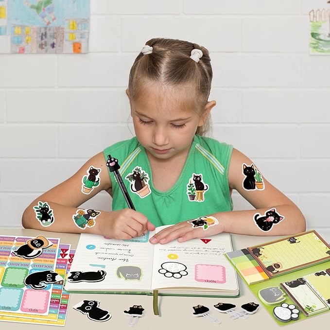 - Sticky Notebooks and Accessories: The black cat floral Sticky Note Book writes smoothly without bleeding ink and is sticky without leaving marks. The attached stickers and paper clips can be used as decorations, and the bookmark can be used to record your reading progress at any time, which is very practical