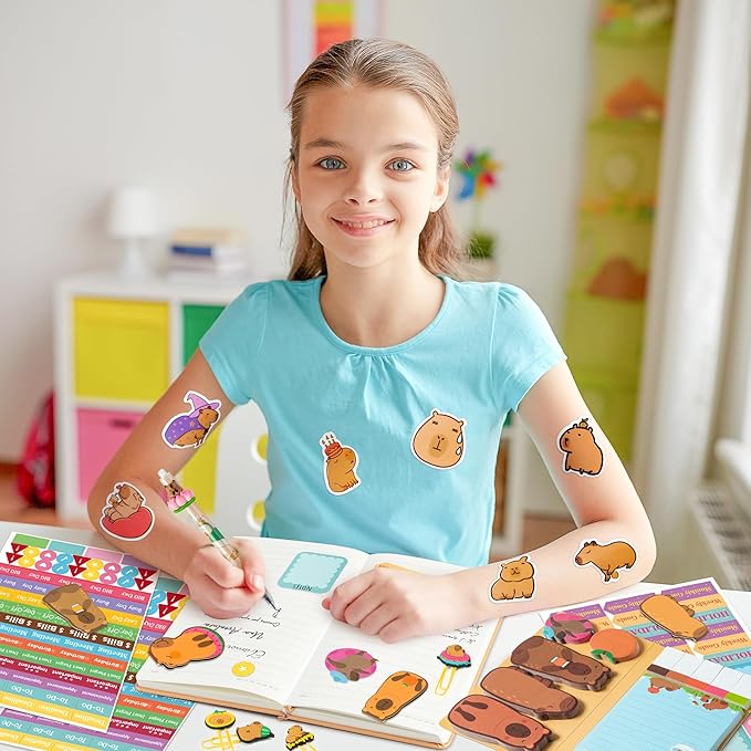 - Sticky Notebooks and Accessories: The capybara Sticky Note Book writes smoothly without bleeding ink and is sticky without leaving marks. The attached stickers and paper clips can be used as decorations, and the bookmark can be used to record your reading progress at any time, which is very practical