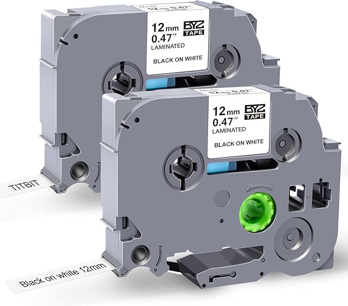 TITBIT 12mm Label Maker Tape Refill Compatible with Brother P Touch Label Tape TZe TZ Tape 0.47 Laminated 1/2" Black on White TZe-231 TZE231 for PTD210 PTD220 PTH110 PTE110 PTD410 PTP710BT, 2-Pack