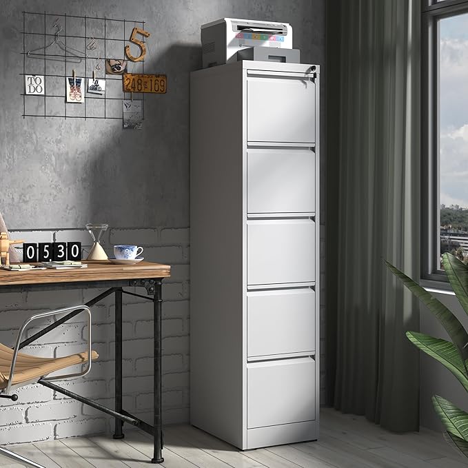 5 Drawer File Cabinet,Metal Filing Cabinets for Home Office,Vertical File Cabinet with Lock,Heavy Duty Metal Storage Cabinet for A4/Letter/Legal Size Files,Assembly Required