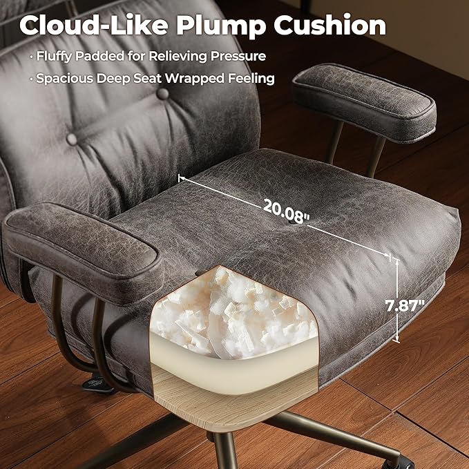 - Mid-Century Modern Chair: This modern MCM office chair is made of high-quality faux leather fabric, unique retro and stylish design to add aesthetic style to your office, practical ultra-wide seat and high back support, 7.87 inches thick seat cushion and fluffy back cushion filled with fully cotton, providing comfortable soft cloud-like wrapped sitting experience