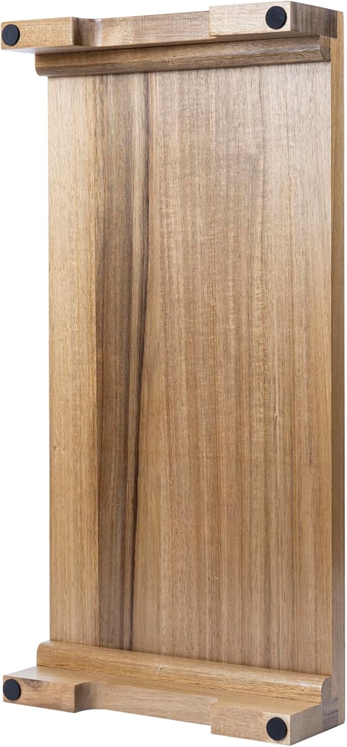 - Monitor display stand is crafted from sustainable acacia solid wood in a natural finish, for a durable desktop organizer with a modern rustic aesthetic
