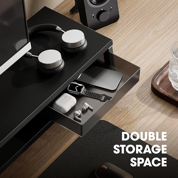 - 【Heavy-Duty Stability】Built with 16mm/0.6” scratch-resistant panels and 20mm/0.8” square tubes (crossbeam reinforced support), this monitor riser with drawer holds up to 45kg/99 lbs. Durable, wobble-free, and easy to clean.