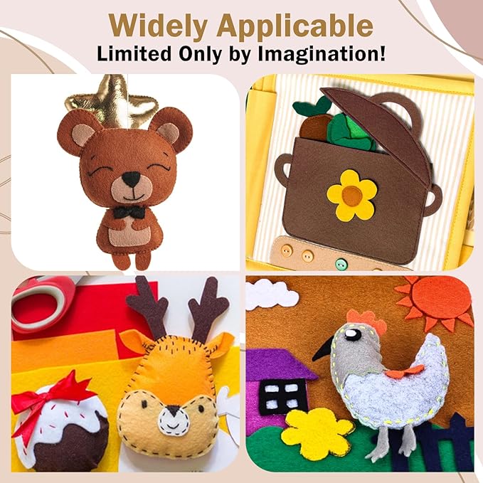 - 【Easy to Use】:This felt is made of high-quality polyester fiber material, which is not easily wrinkled or deformed, easy to cut and sew, and does not require specialized tools or advanced skills. Beginners can easily complete creative handmade projects.