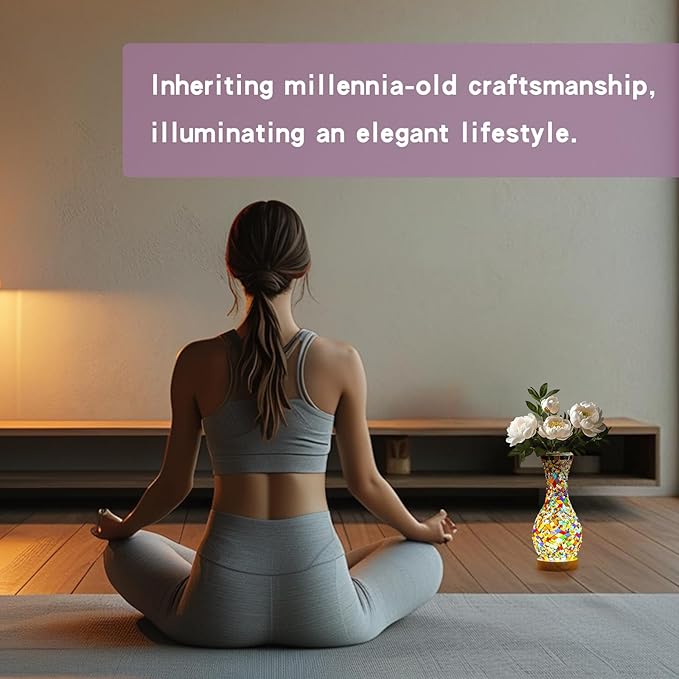 Turkish Moroccan Style Mosaic Table Lamp with USB Power - Colorful Glass Vase Light for Living Room or Bedroom Decor
