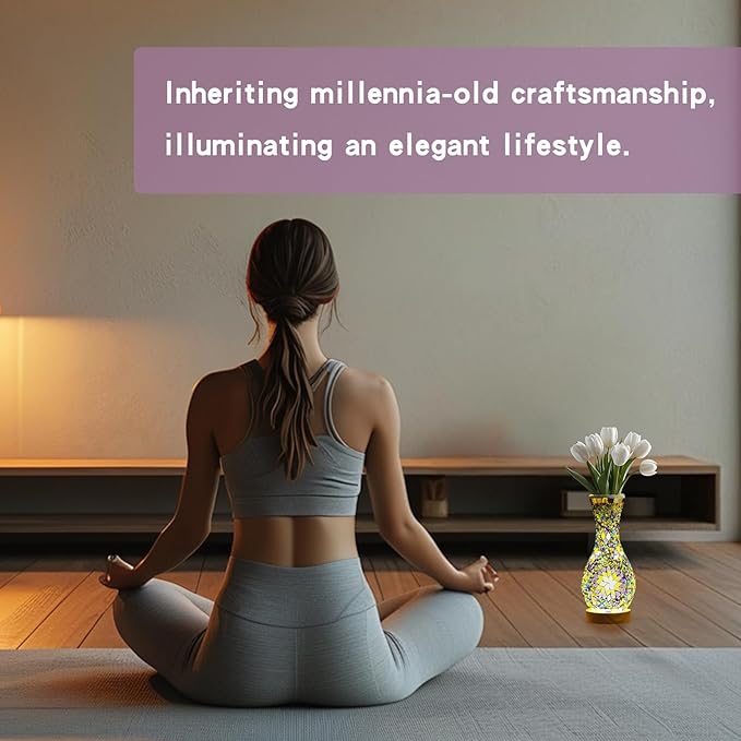 Stylish Turkish Mosaic Table Lamp Glass Vase Light with USB Power for Living Room or Bedroom Decoration
