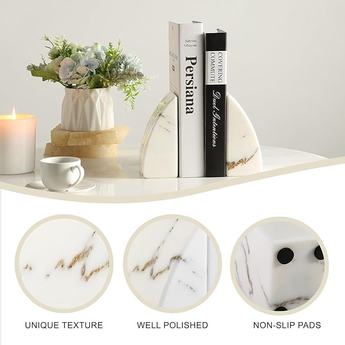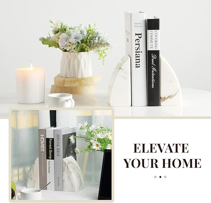 - 【Luxury & Elegant】Koville book ends are made of 100% natural high quality marble from Namibia. Each bookend has its own unique textures and colors, no two pieces are exactly the same, revealing the wonders of nature and will be an elegant addition to your tabletop decor