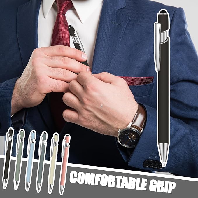 - You will get: 24 pieces ballpoint pens with stylus tip, enough for your daily needs and replacements; The size of a single metal stylus pen with stylus tip is 5.5 x 0.4 inch/ 14 x 1 cm, which is the right size for a pen; Note: The ink is blue