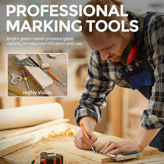 - Ergonomic Design: Our carpenter markers designed with ergonomic and non-slip grips, providing a maximum comfortable user experience.Non-slip surfaces ensure a firm hold, improving control and precision.In addition, includes a practical pocket clip, making it easy to carry and access on the job site