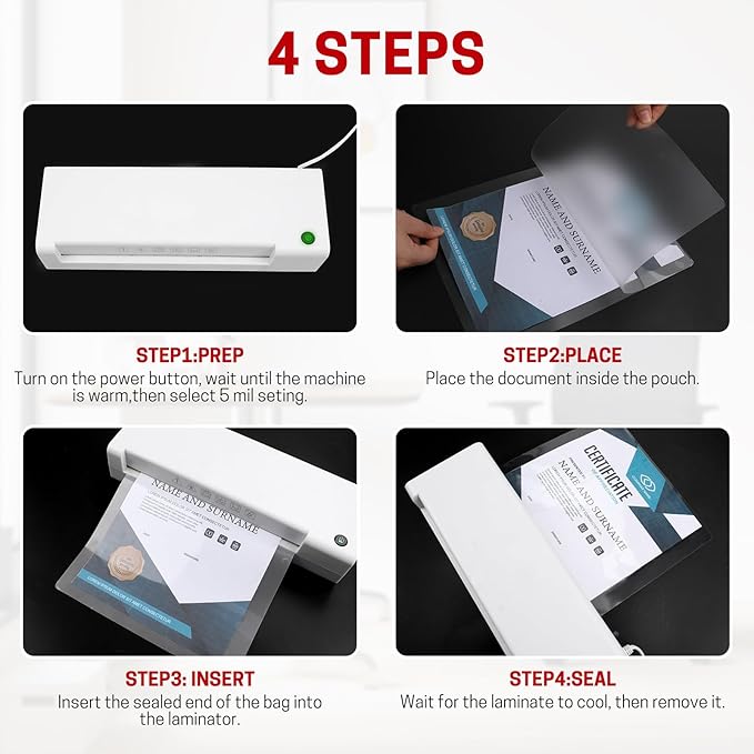 - Application:Perfect for protecting certificates,signs,photos,awards,calendars,kids artworks.It can seal and protect your documents it can be used in classroom, home and office.Compatible with all thermal laminator machine brands