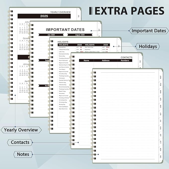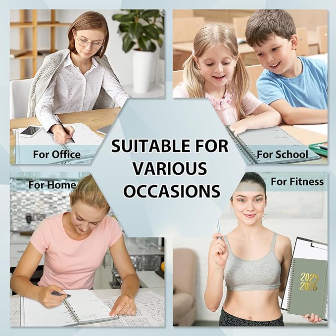 - 12-MONTH PLANNER - Organize your life with ROZZBY's July 2025-June 2026 calendar planner. The A5 size (6.3"x8.5") fits perfectly in backpacks and briefcases. Monthly pages show previous/next months for long-term planning, while weekly spreads offer clean sections for schedules and notes. Ideal for students and professionals alike.