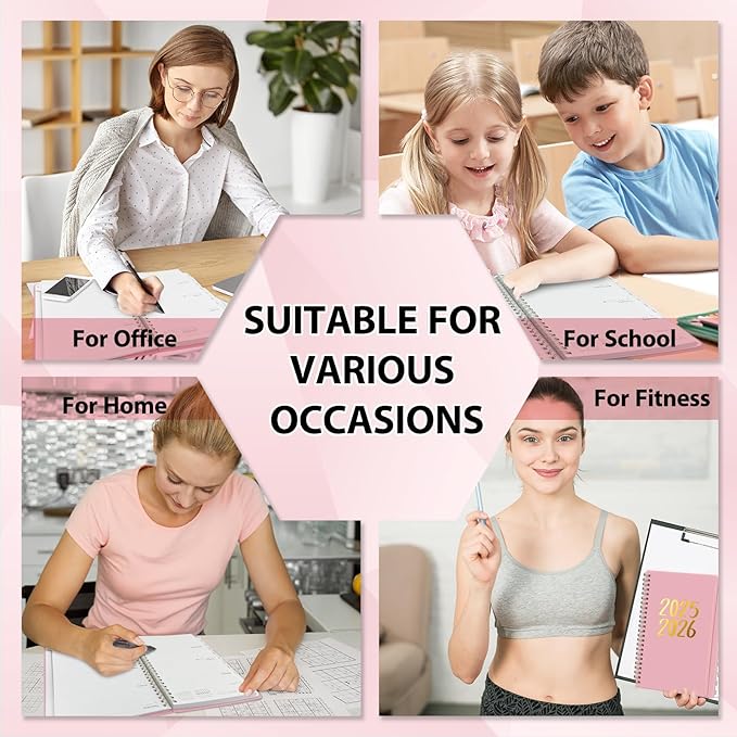 - 12-MONTH PLANNER - Organize your life with ROZZBY's July 2025-June 2026 calendar planner. The A5 size (6.3"x8.5") fits perfectly in backpacks and briefcases. Monthly pages show previous/next months for long-term planning, while weekly spreads offer clean sections for schedules and notes. Ideal for students and professionals alike.