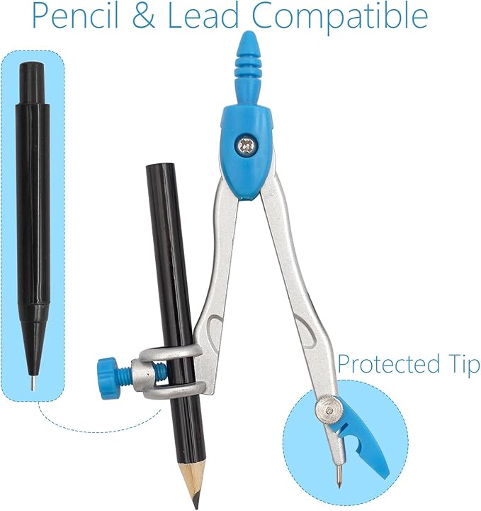- Akuoly Drafting Compass Kit Starter Math Set Featuring Geometry Compass, Protractor, Set Squares, and Ruler – for School Graders Math Study with Every Piece Compact in Carrying Case, Classic Blue