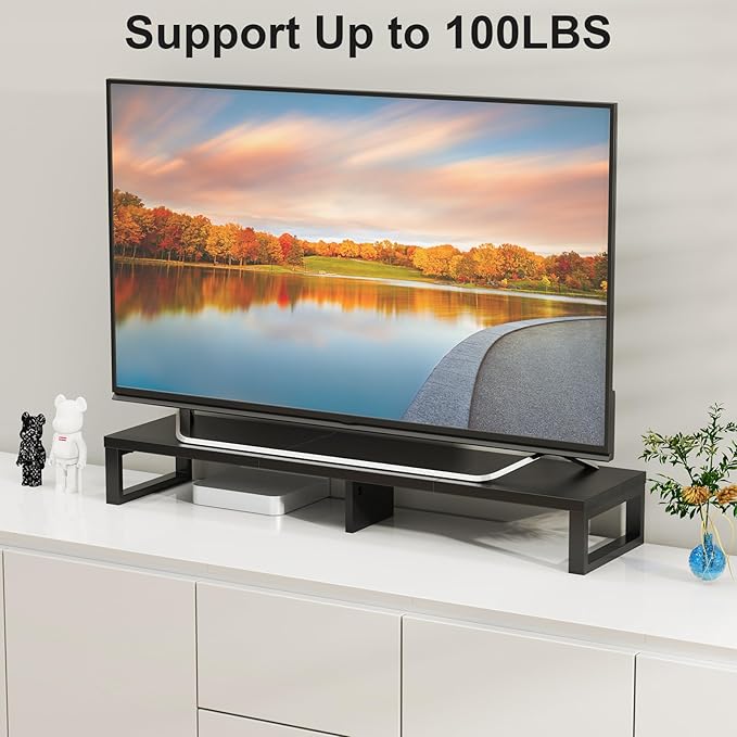 - Monitor Riser with 100lb Capacity: Built with reinforced steel legs and a 39.4" platform, this dual monitor stand doubles as a printer stand, laptop riser, or TV stand. Rock-solid stability meets versatile functionality.